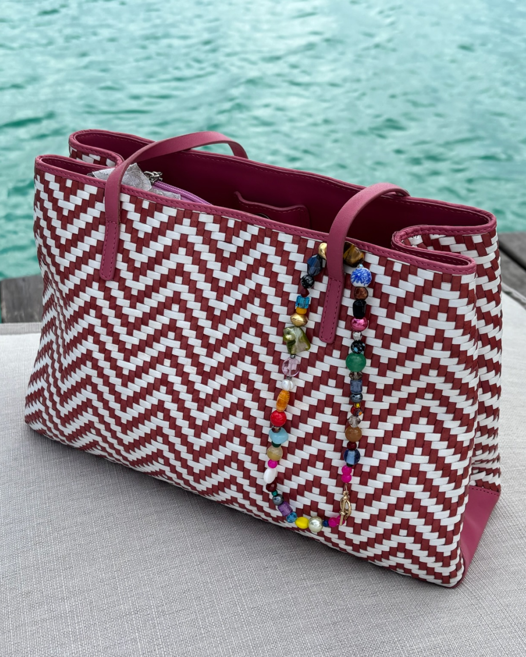 - Made from an assortment of upcycled and new stone, glass, ceramic, plastic, pearl, and metal beads