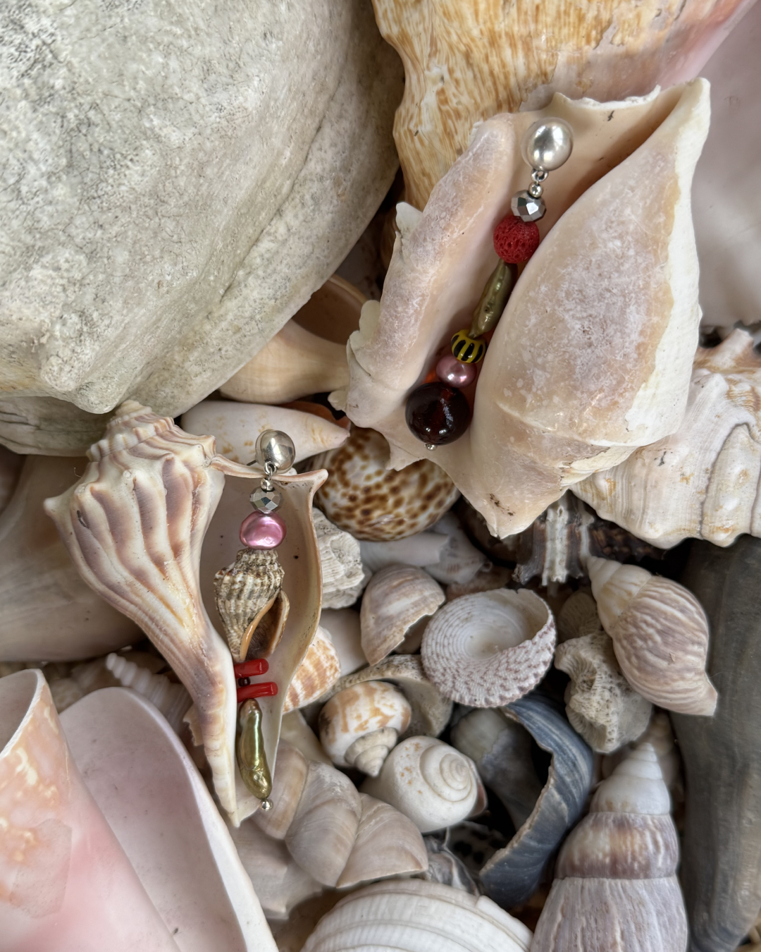 - Made with upcycled glass, freshwater pearl,coral, and shell beads