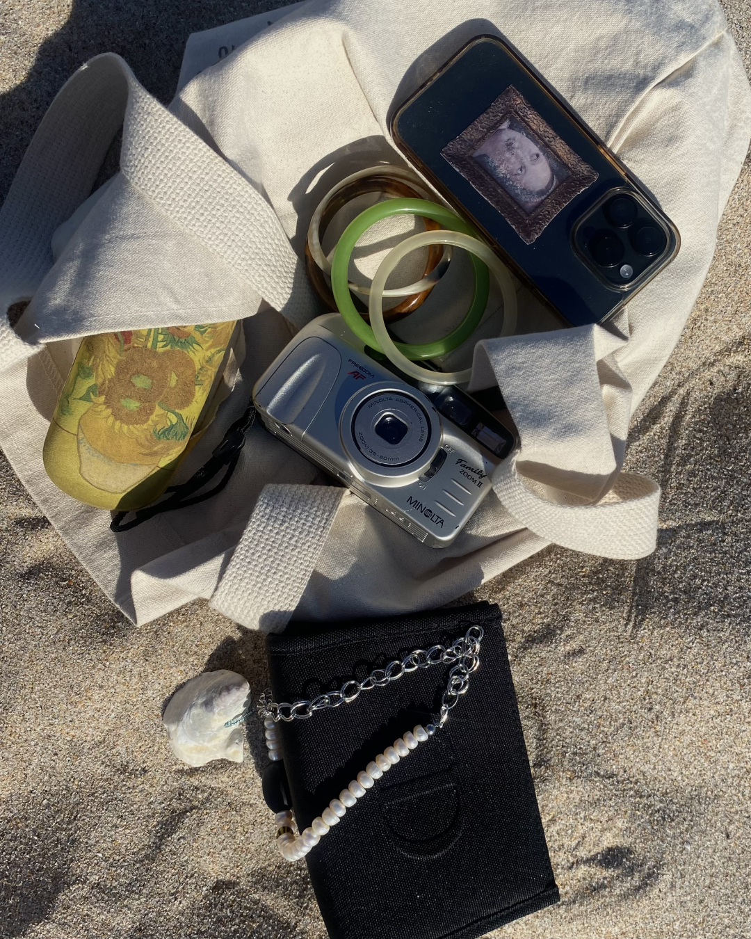 Each piece comes in a pouch made from upcycled fabric, sewn by Mercedes in Yonkers – who I met at a church flea market – How very on brand of me;)