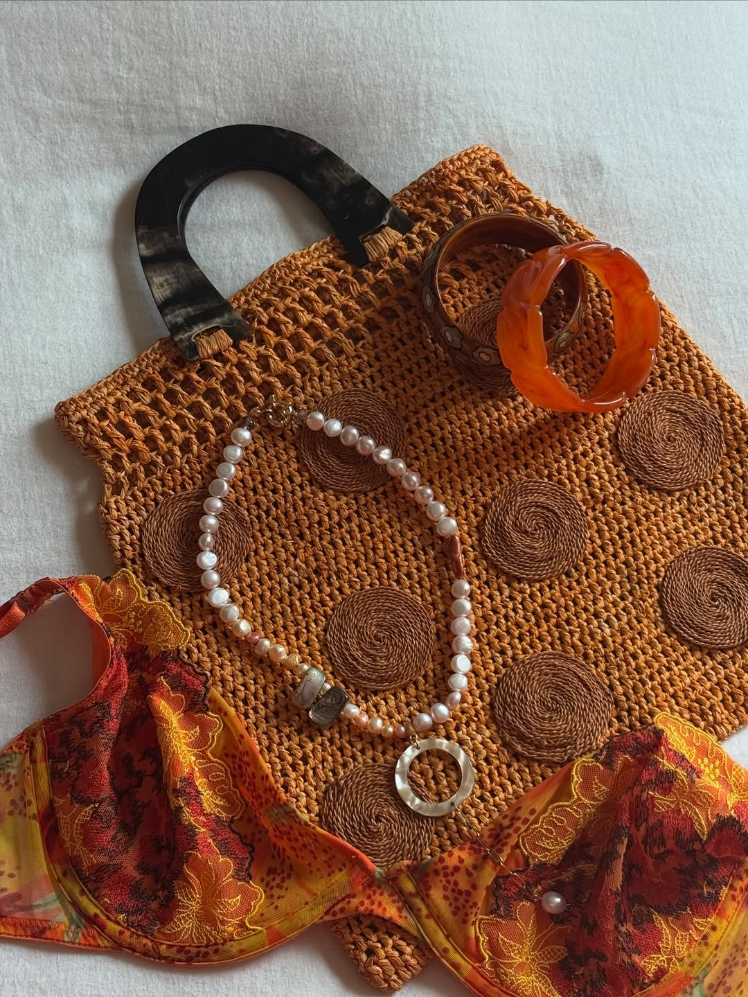 - Can be worn two ways — coral on one side, shiny mother of pearl on the other, for two necklaces in one!